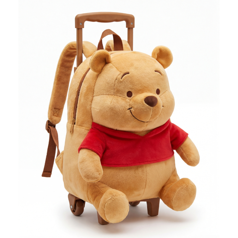 Mochila de Rodinhas Infantil Pelúcia 3D Ursinho Pooh