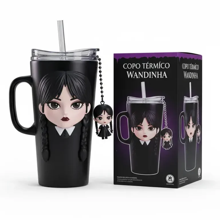 🖤 Copo Térmico Wandinha Addams 1,15L + Pingente (Brinde GRÁTIS)