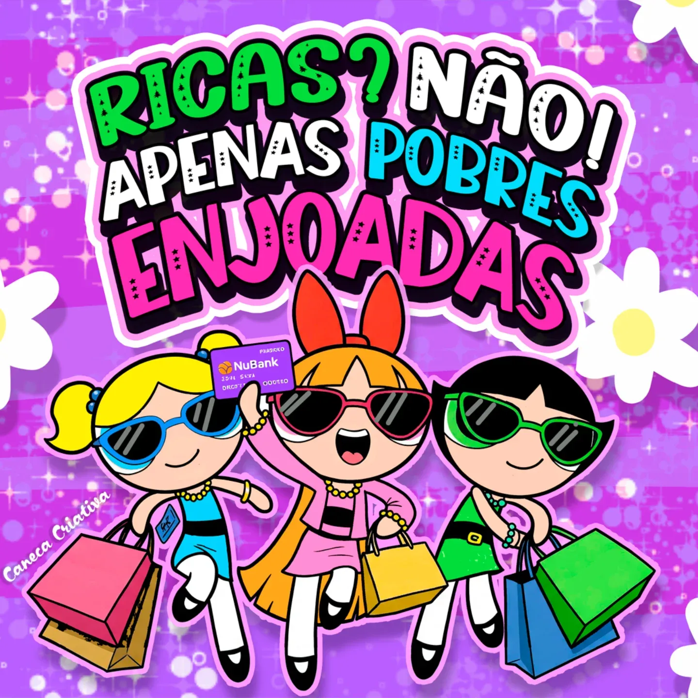 🟣 Caneca Meninas Superpoderosas – “Ricas? Não. Apenas Pobres Enjoadas” + Pingente Lilás 350ml