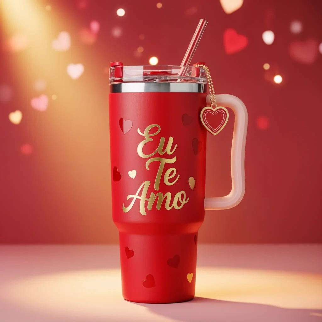 ❤️ Copo Térmico Eu Te Amo Corações Vermelho 1,15 L + Pingente Brin