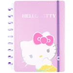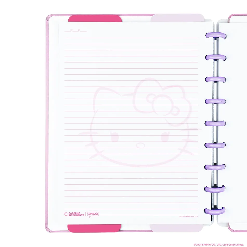 Cada página é decorada com detalhes temáticos da Hello Kitty, como a personagem e linhas rosa, tornando suas anotações mais alegres e inspiradoras.