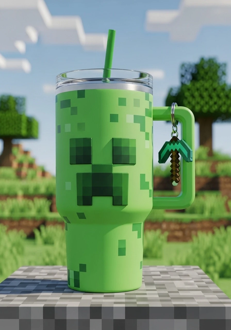 Copo Térmico Creeper 2025 Minecraft + Pingente Picareta 1,15 L