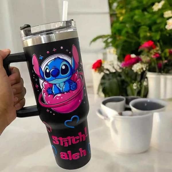 - Design Incrível: O Stitch, personagem mais amado da Disney, estampa o copo com um visual vibrante e alegre. Disponível nas cores branca, preta e rosa, para combinar com o seu estilo.