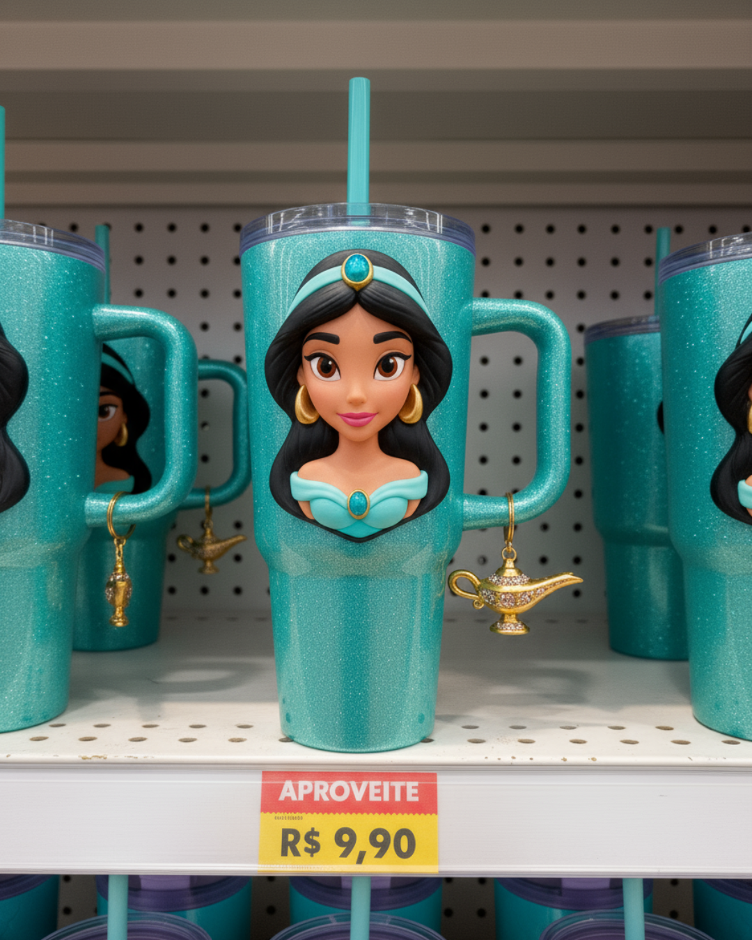 Copo Térmico Princesa Jasmine | 1,15L + Pingente GRÁTIS