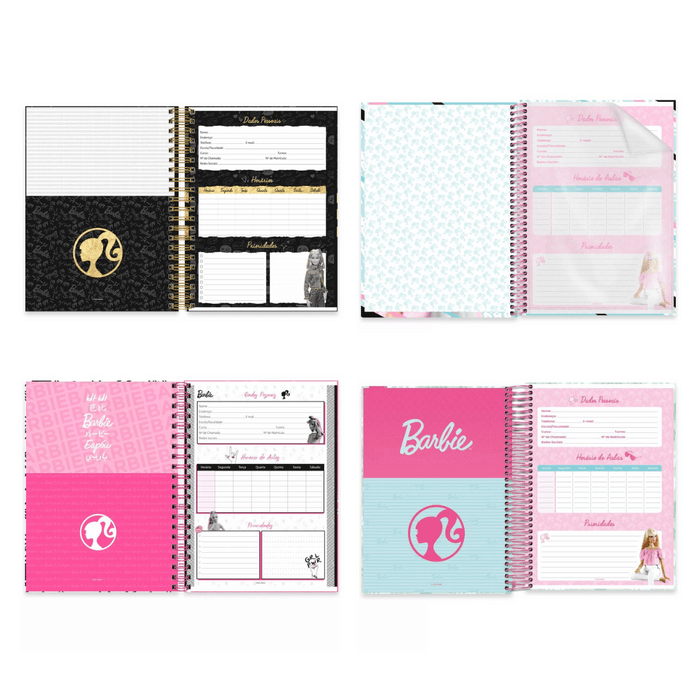 - Extras Mágicos: Cada caderno vem com adesivos exclusivos da Barbie e marcadores de páginas personalizados.